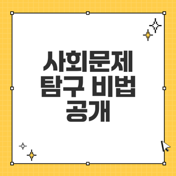 사회문제 탐구의 핵심은 체계적이고 논리적인 보고서 작성입니다. 효과적인 보고서를 위해서는 아래의 단계에 따라 작성하는 것이 좋습니다: